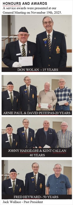 ATTENTION ALL MEMBERS anyone entitled to a service pin, please notify the office (519 752-6668) or send to swalla@sympatico.ca